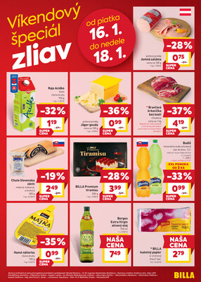 - BILLA toaletný papier 4-vrstvový 8 ks/1 bal. v akcii, za 2,79 € , akcia platí od 16.1.2026 do 18.1.2026.
