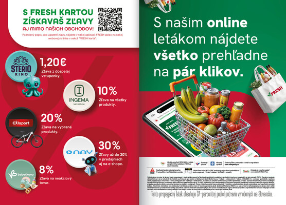 Prelistujte si tiež akčné letáky Fresh, nájdite najbližšie predajne Fresh a zistite, aké sú tento týždeň zľavy v obchodoch Fresh.
