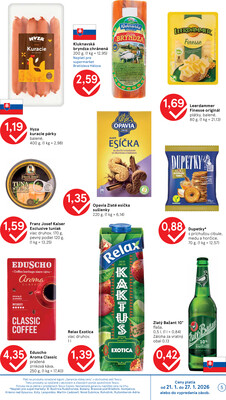 Na 5. stránke letáku Tesco supermarkety od 21.1. do 27.1.2026 platného od 21.1.2026 do 27.1.2026 nájdeme nasledujúci tovar v akcii.
