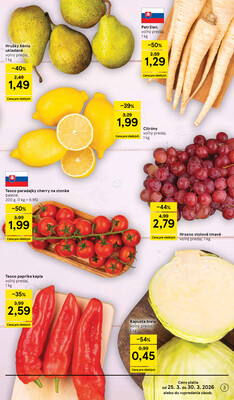Na 3. stránke letáku Tesco supermarkety od 25.3. do 30.3.2026 platného od 25.3.2026 do 30.3.2026 nájdeme nasledujúci tovar v akcii.